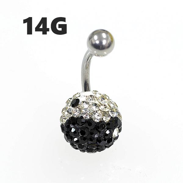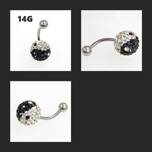 陰陽/インヤン パヴェボール【12mm】へそピアス バナナバーベル サージカルステンレス【14G/1.6mm】(ボディーピアス/ボディピアス)イヤ