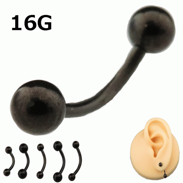 ボディピアス 16G 1.2mm バナナバーベル ブラック アイブロー へそピアス サージカルステンレス ボディーピアス