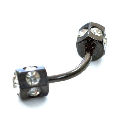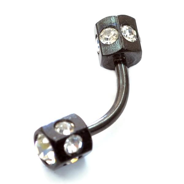 ヘキサゴンジュエル バナナバーベル【ブラックシャフト】 アイブロー/へそピアス サージカルステンレス【16G】