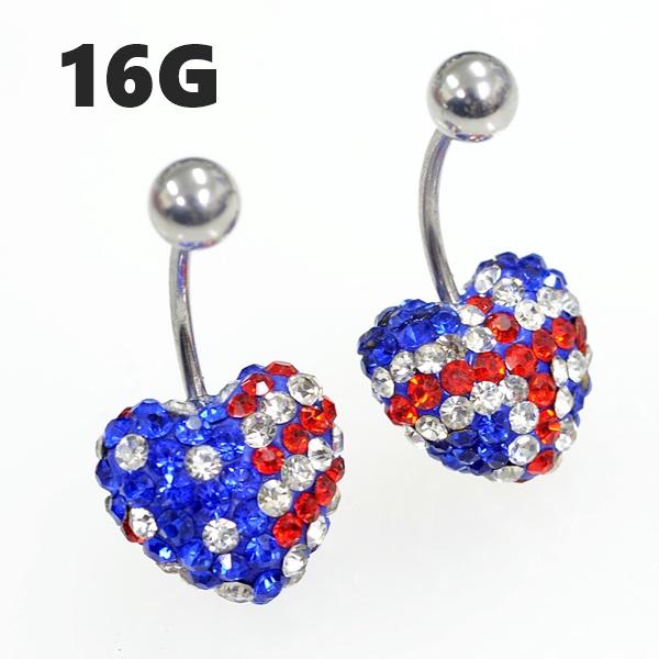 ハート/国旗 パヴェボール へそピアス バナナバーベル サージカルステンレス【16G/1.2mm】