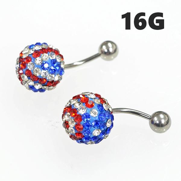 国旗 パヴェボール【12mm】へそピアス バナナバーベル サージカルステンレス【16G/1.2mm】