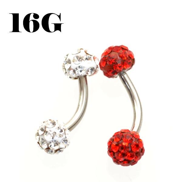 パヴェボール バナナバーベル/アイブロー/へそピアス サージカルステンレス【16G】(ボディーピアス/ボディピアス)イヤーロブ/トラガス/