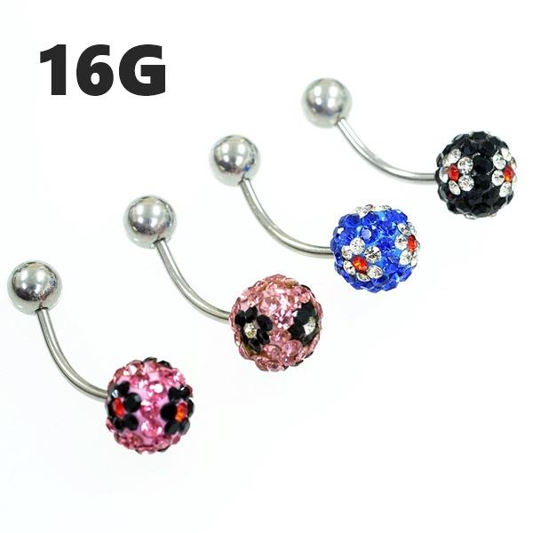 花柄 パヴェボール パヴェボール【8mm】へそピアス バナナバーベル サージカルステンレス【16G/1.2mm】