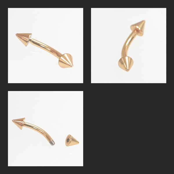 ピンクゴールド スパイク バナナバーベル アイブロー/へそピアス【16G/1.2mm】 サージカルステンレス(ボディーピアス/ボディピアス)イ・