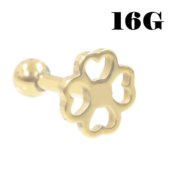 四葉 ストレートバーベル 【16G】サージカルステンレス (ボディピアス/ボディーピアス/軟骨ピアス/軟骨 ピアス/ボディピ/ピアス/BP)