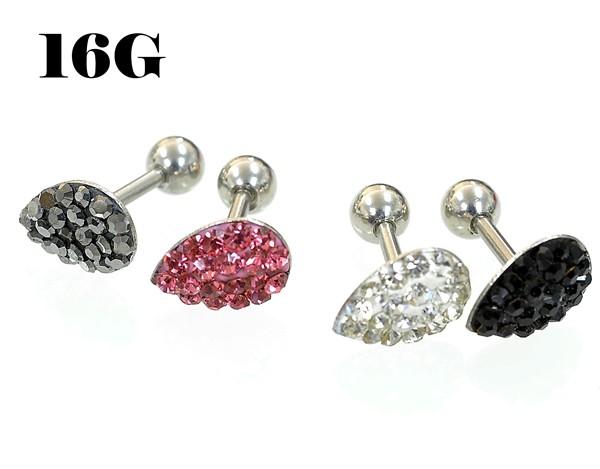 ドロップ型 フラットパヴェ ストレートバーベル/軟骨ピアス【16G】サージカルステンレス