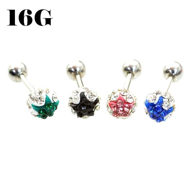 スター/星 パヴェボール 【5.5mm】ストレートバーベル/軟骨ピアス【16G】サージカルステンレス(ボディピアス/ボディーピアス)16ゲー・