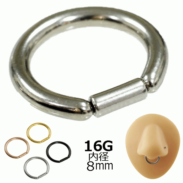 ボディピアス セグメントリング 鼻ピアス バーストレートタイプ 16G 1.2mm リング内径8mm PVD 真空コーティング サージカルステンレス 316L