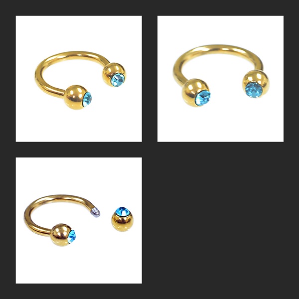 サーキュラーバーベル 【ゴールド】ジュエルボール 【16G】サージカルステンレス(ボディピアス/ボディーピアス)リップ/ヘリックス/耳
