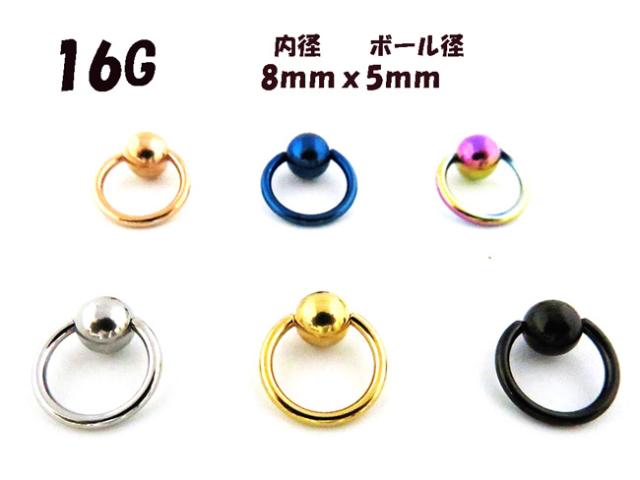 キャプティブビーズリング 選べる6カラー【16G】サージカルステンレス