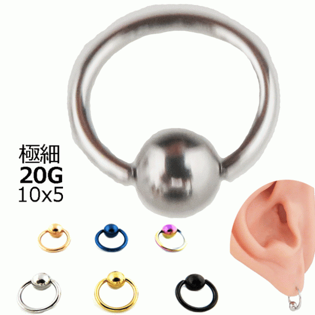 ボディピアス キャプティブビーズリング 20G 0.8mm サージカルステンレス ボディーピアス ボディピ ピアス 内径10mm ボール 径5mm