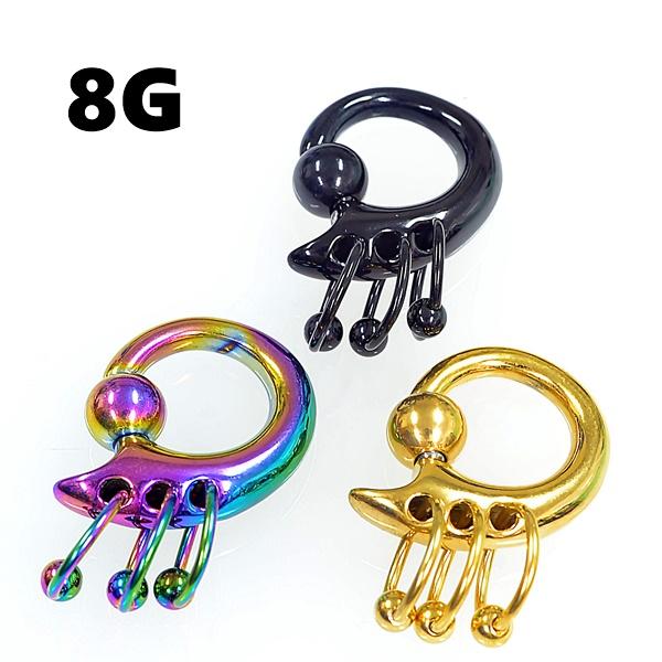 トライバルタイプ 3連ビーズ キャプティブビーズリング ロブピアス【8G】サージカルステンレス