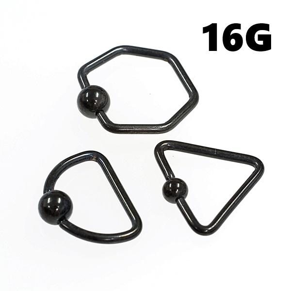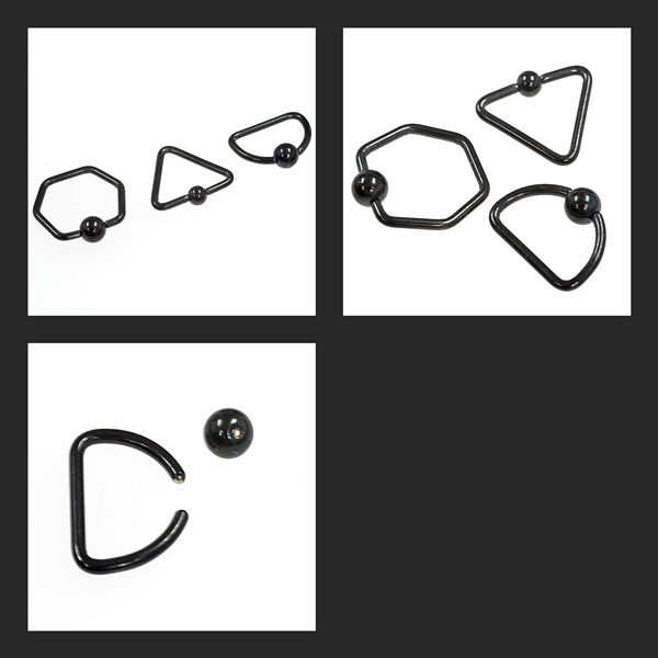 ブラック変形 キャプティブビーズリング リングピアス【16G】