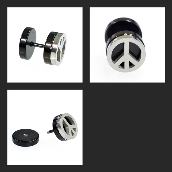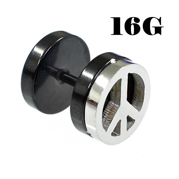 ピースマーク プレート フェイクプラグ/フェイクバーベル ストレートバーベル 【16G/1.2mm】ボディピアス/片耳売り