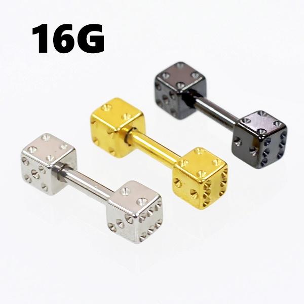 ボディピアス フェイクプラグ サイコロ 16G ストレートバーベル 軟骨ピアス 片耳1個売り