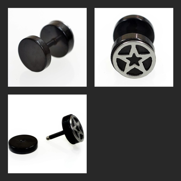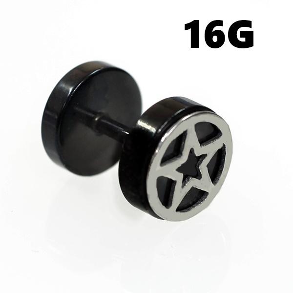 スター/星 フェイクプラグ/フェイクバーベル ストレートバーベル 【16G/1.2mm】(ボディピアス/軟骨ピアス ) 片耳売り
