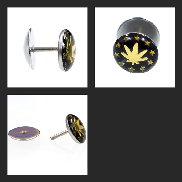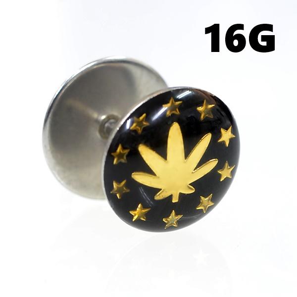ボディピアス 16G 1.2mm マリファナ フェイクプラグ フェイクバーベル ストレートバーベル 軟骨ピアス 片耳売り