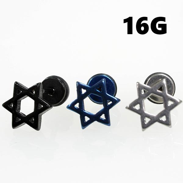 ボディピアス 16G 1.2mm 六芒星 ヘキサグラム フェイクプラグ フェイクバーベル ストレートバーベル ボディピアス 軟骨ピアス 片耳売り