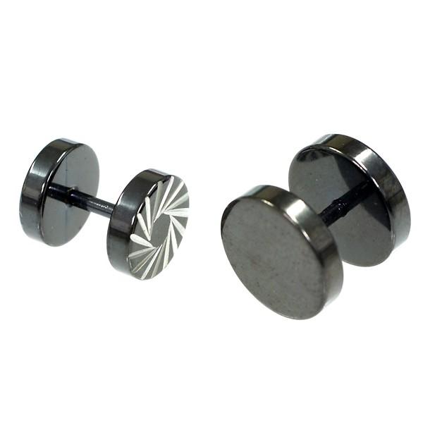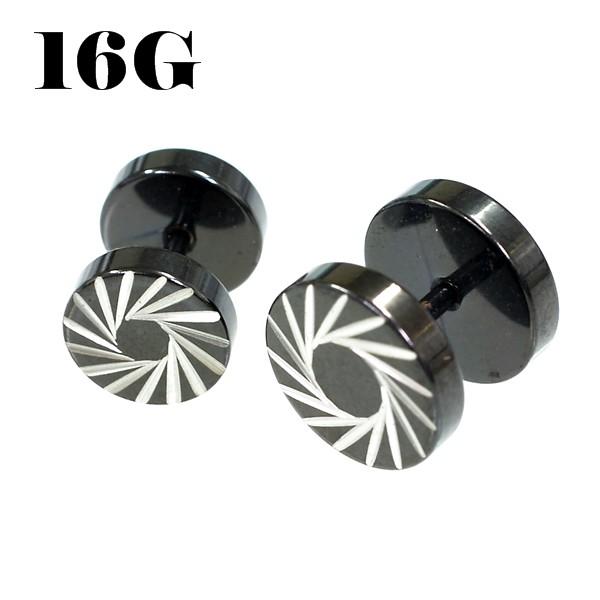 プレート型 カーヴィング フェイクプラグ ストレートバーベル ブラックカラー【16G】(ボディピアス/シングルピアス/軟骨ピアス ) 片耳・