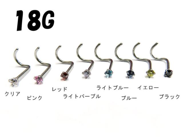 選べる8カラーストーン タテ爪ジュエル2mm ノーズスクリュー 鼻ピアス(ハナピアス) 鼻ピ 【18G/1.0mm】(ボディピアス/ボディー・