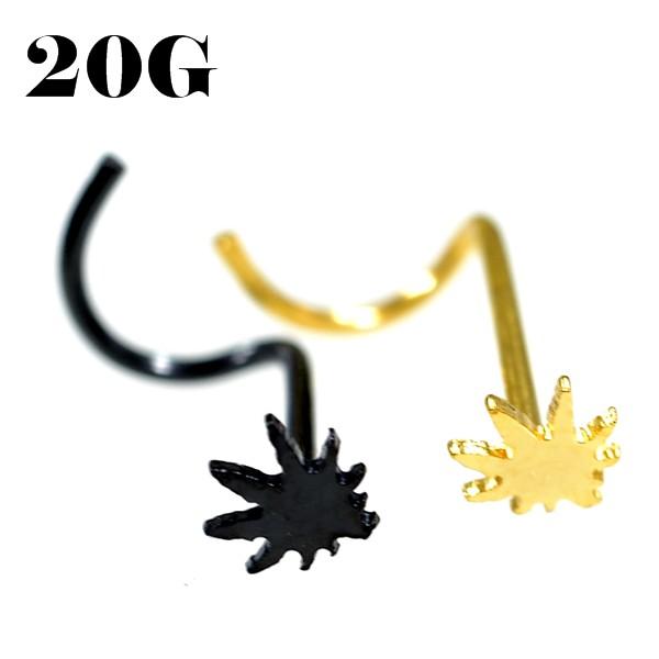 マリファナ ノーズスクリュー【20G】鼻ピアス(ハナピアス)ノストリル (ボディピアス/ボディーピアス)ステンレスピアス/