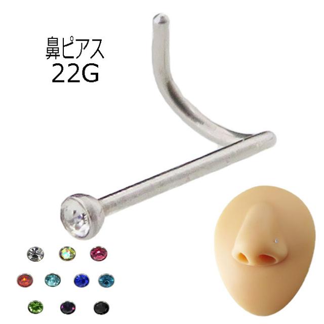 鼻ピアス スクリュー 22G ステンレス製 ジュエル付き ゴールド ストレートポスト 金属アレルギー対応 シンプル ノーズスクリュー 10カラー