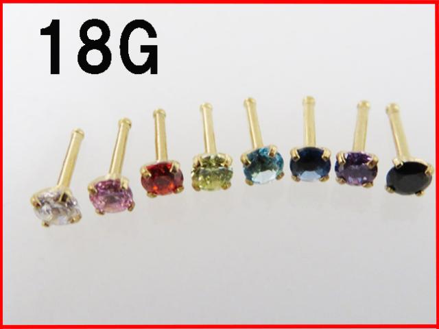 選べる8カラーストーン たて爪ジュエル ノーズスタッド 鼻ピアス(ハナピアス) 鼻ピ PVD(真空コーティング) ゴールドカラー【18G】内径