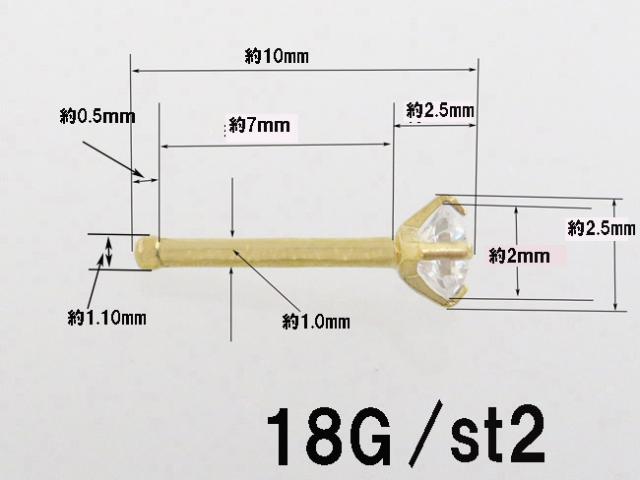 たて爪ジュエル ノーズスタッド 鼻ピアス(ハナピアス) 【18G】2mm/ボディー PVD(真空コーティング)ゴールドカラー