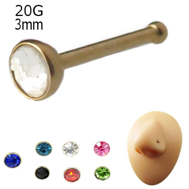 鼻ピアス ノーズスタッド ノストリル ハナピアス ゴールド ラウンドカップ ジュエル 3mm 20g ボディピアス