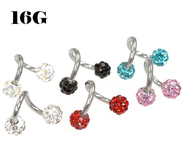 パヴェボール スパイラルバーベル サージカルステンレス【16G】【内径6mm/ボール径4mm】