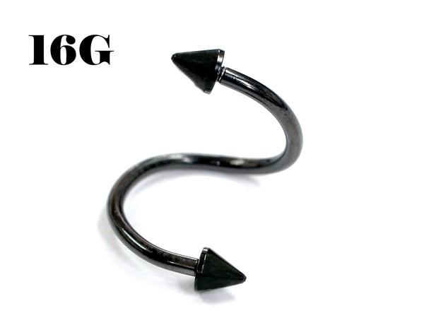 ボディピアス スパイラルバーベル 16G 1.2mm 12x3 bk サージカルステンレス へそピアス 軟骨ピアス ヘリックス 口ピアス ボディーピアス 16ゲージ