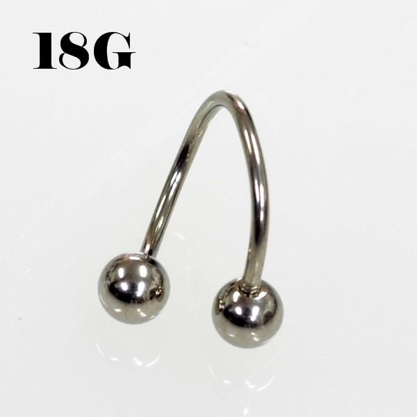 スパイラルバーベル サージカルステンレス【18G】へそピアス/軟骨ピアス/ヘリックス/口ピアス・ボディピアス/ボディーピアス/18ゲージ/1