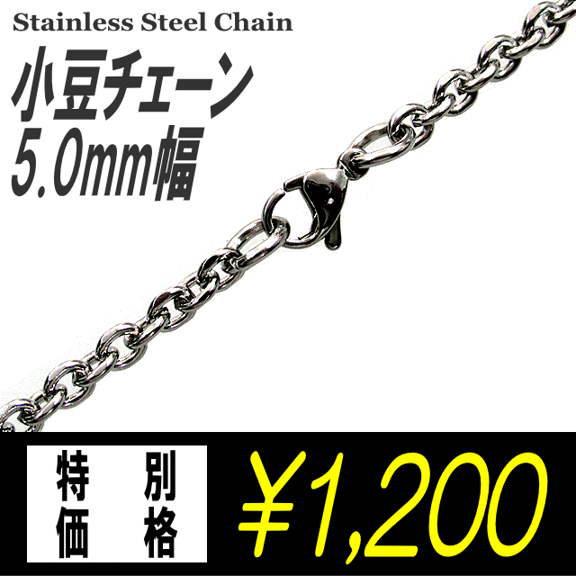 ステンレスネックレス/ 小豆/チェーン 【5.0mm幅】ステンレスチェーン/あずきチェーン/アズキチェーン/ステンレスチェーン/ネックレス(