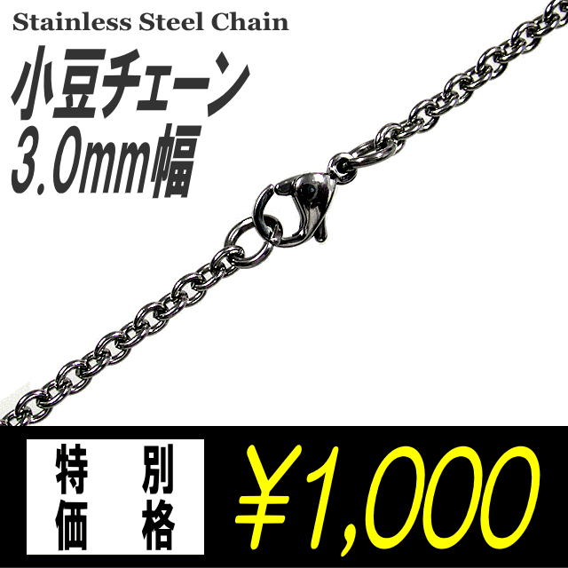 ステンレスネックレス /小豆/チェーン 【3.0mm幅】ステンレスチェーン/あずきチェーン/アズキチェーン/ステンレスチェーン/ネックレス(