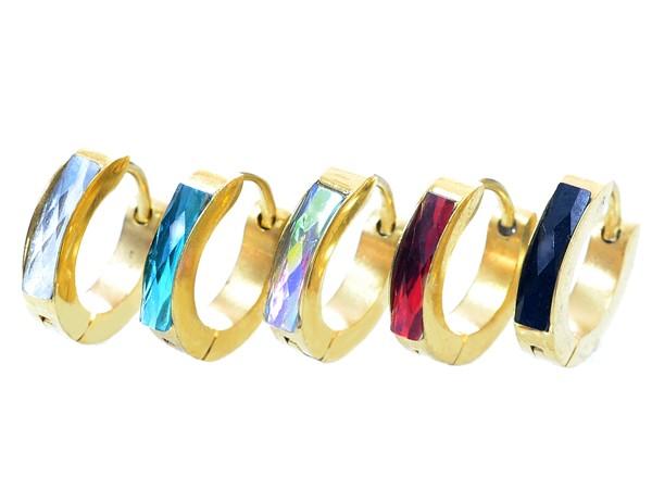ジュエル ゴールドカラー ステンレスフープピアス/サージカルステンレスピアス/