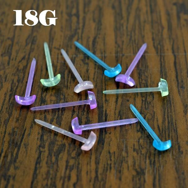 【10本入り】ムーン/月型 カラー 柔らかアクリルピアス 【18G】【軸長10mm】透明ピアス/透ピ/リテーナー/クリアカラーピアス/ボディピアス/ボ