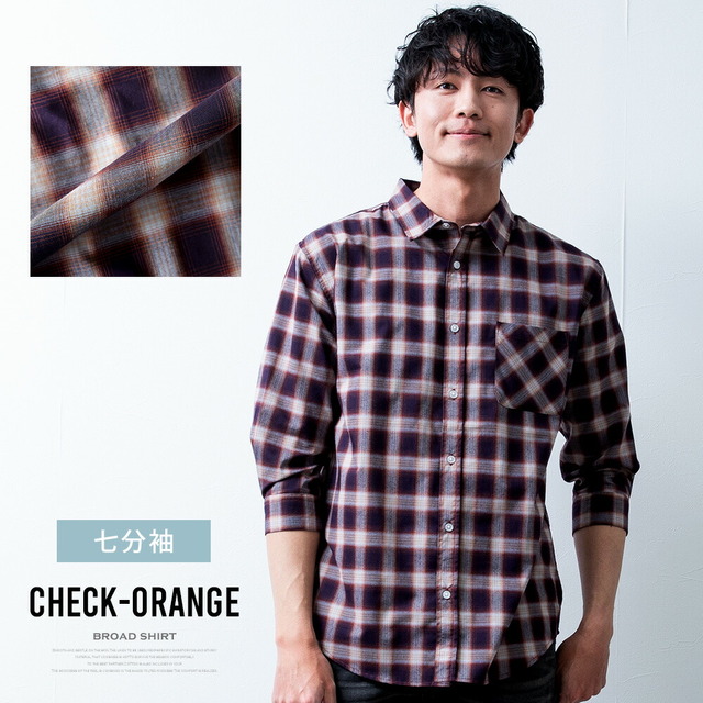 シャツ メンズ 半袖 長袖 七分袖 ブロードシャツ 長袖シャツ カジュアルシャツ おしゃれ チェック 総柄 通学 アメカジ チェックシャツ 大きいサイズ レギュラーカラー 爽やか Yシャツ オレンジ 春夏 ギフト 涼しい ブルー シンプル 無地