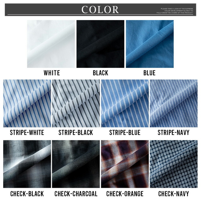 | ホワイト ブラック ブルー ストライプ・ホワイト ストライプ・ブラック ストライプ・ブルー ストライプ・ネイビー チェック・ブラック チェック・チャコール チェック・オレンジ チェック・ネイビー |