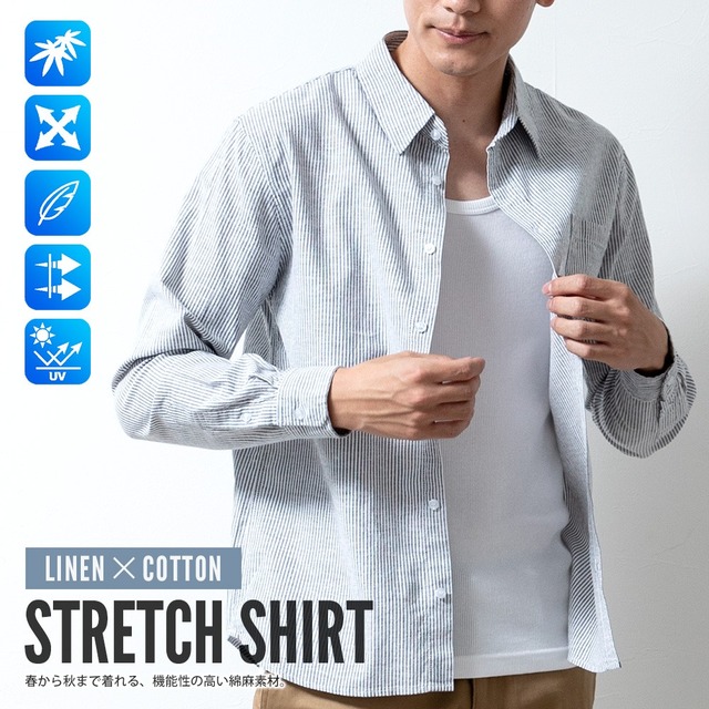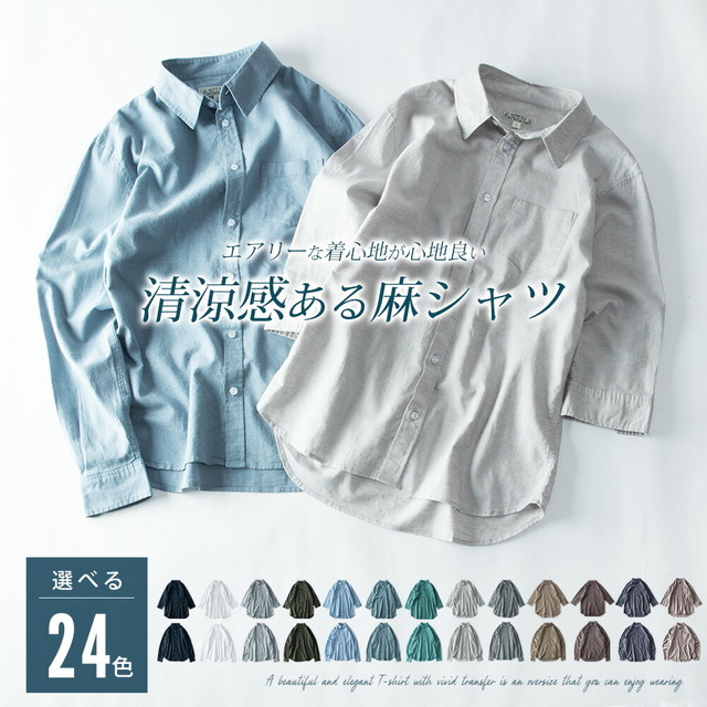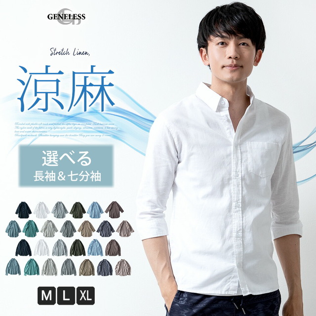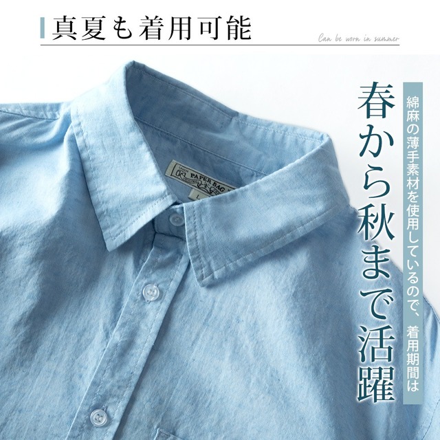 シャツ メンズ 綿麻 長袖 七分袖 7分袖 夏 涼しい ストレッチ エアリー シンプル スモーキーブルー 仕事 レギュラーカラー カジュアルシャツ おしゃれ ビジネス クールビズ 定番 カジュアル フレンチ アッシュカーキ