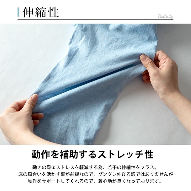 | (本体)綿70% 麻28% ポリウレタン2% |