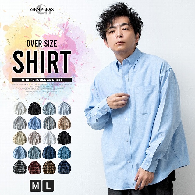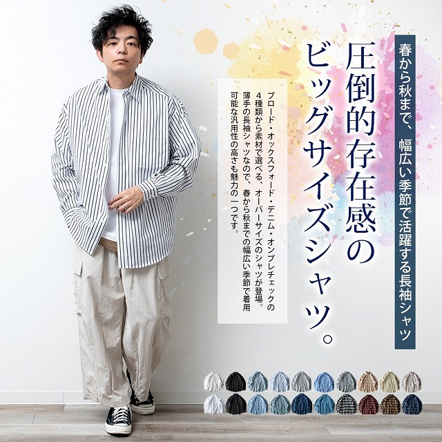 シャツ メンズ 長袖 オーバーサイズ オックスシャツ チェック オックスフォード ゆったり メンズシャツ ボタンダウン ストライプ デニム ビッグシルエット Yシャツ カジュアルシャツ 全20色