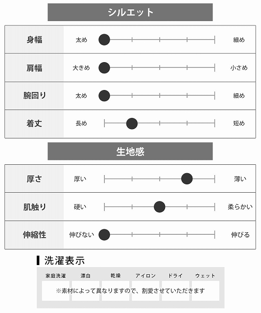 | B/E・サイズ | 着丈 | 身幅 | 肩幅 | 袖丈 |