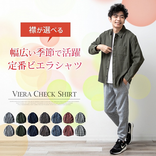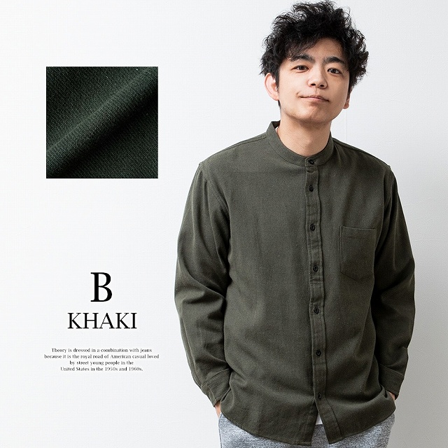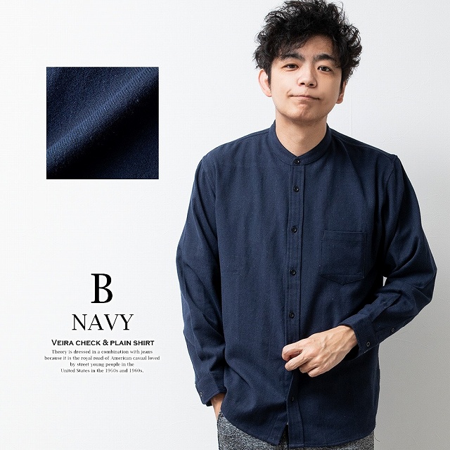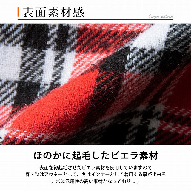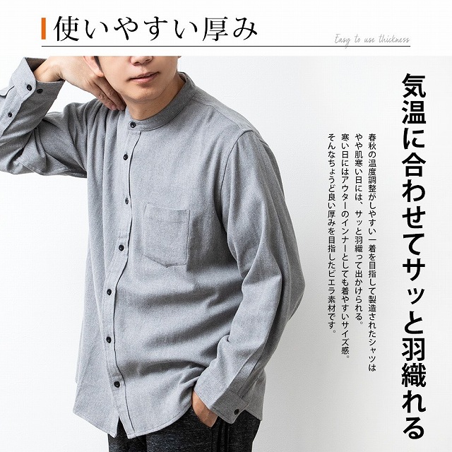 シャツ メンズ チェック チェックシャツ 長袖 長袖シャツ 暖かい 秋冬 おしゃれ メンズシャツ バンドカラー カジュアルシャツ ネルシャツ 起毛 立ち襟 ビエラチェック 全7色