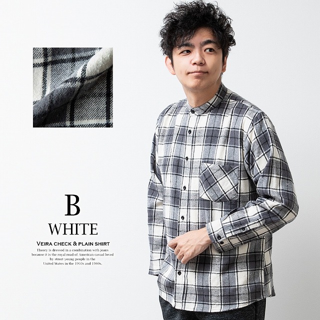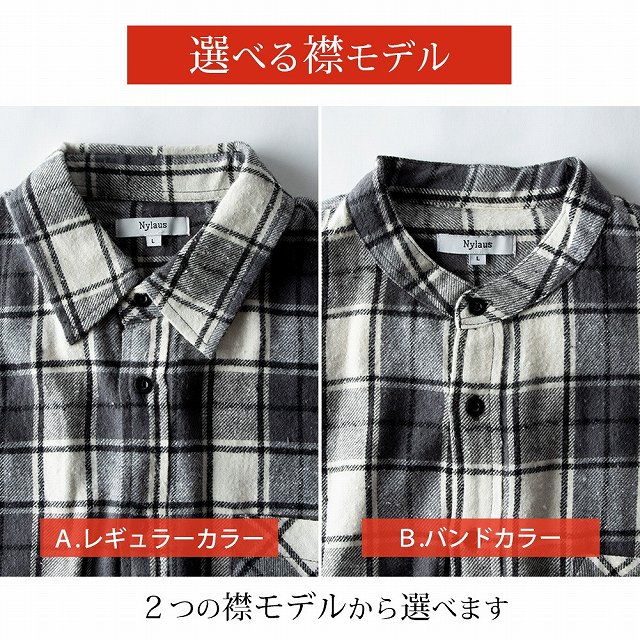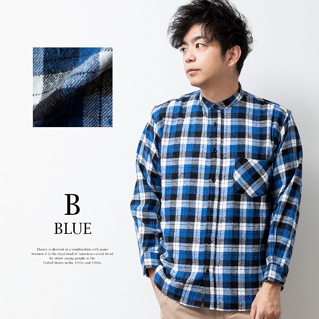 シャツ メンズ チェック チェックシャツ 長袖 長袖シャツ 暖かい 秋冬 おしゃれ メンズシャツ バンドカラー