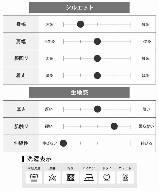 | 無地・サイズ | 着丈 | 身幅 | 肩幅 | 袖丈 |
