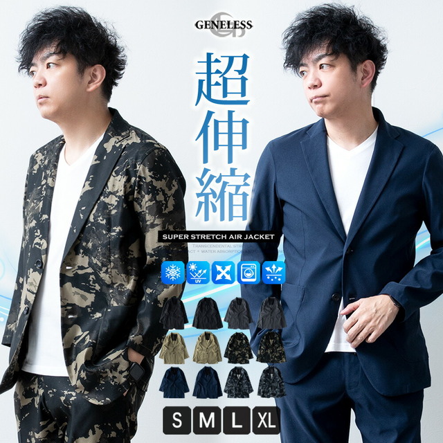 テーラードジャケット メンズ スーパーストレッチ 接触冷感 超伸縮 テーラード ジャケット アウター ブレザー ネイビー 全4色 黒 コート カモ 在宅ワーク 迷彩