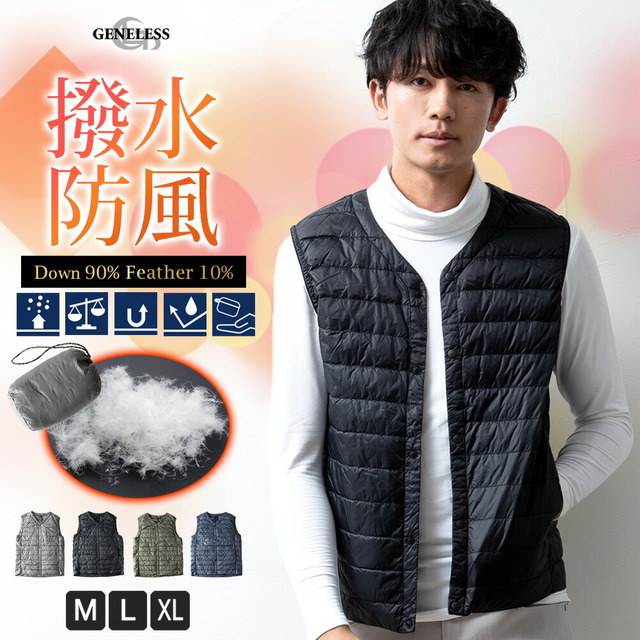 インナーダウン ベスト メンズ ダウンベスト 軽量 防寒 Vネック 抗菌 防臭 インナーダウンベスト M フェザー ブラック ウルトラライト カジュアル カーキ ネイビー L XL 全4色 レディース 軽い 黒 ダウン