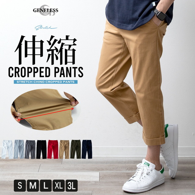 クロップドパンツ メンズ ストレッチ ハーフパンツ チノパン 膝下 7分丈 ゴルフウェア パンツ 七分丈 ゴルフパンツ スタンダード クロップド プレゼント 膝下丈