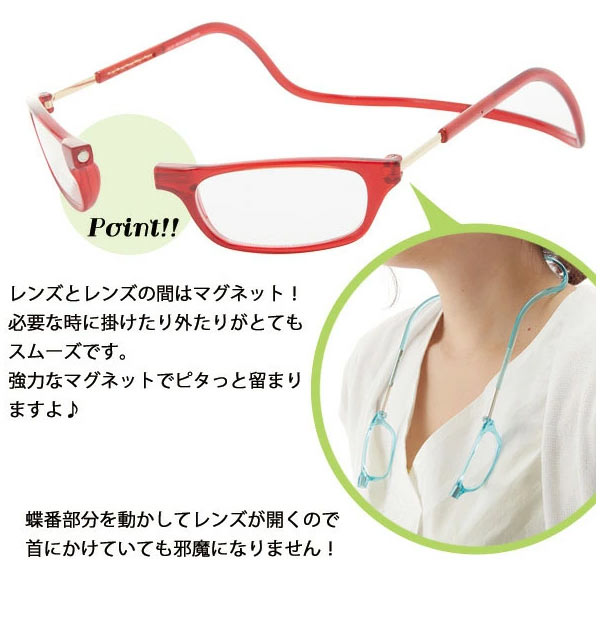 老眼鏡 clic readers クリックリーダー シニアグラス リーディンググラス 男性 通販 女性 マグネット 非球面 おしゃれ 1.0 首かけ 磁石 老眼 眼鏡 メガネ アイウエア 老眼鏡 clic-readers clic reader レギュラー 27-clic-readers-001-wk