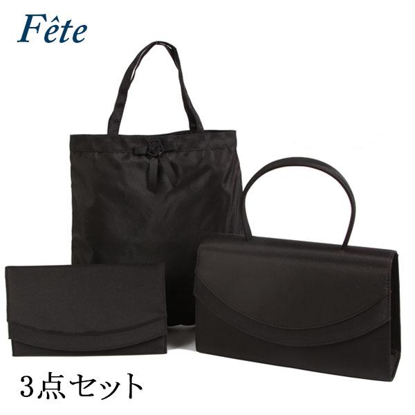 フォーマルバッグ フェッテ フ フォーマルバ 定番 手提げ 黒 結婚式 弔辞 手提げサブバッグ&ふくさ 3点セット Fete